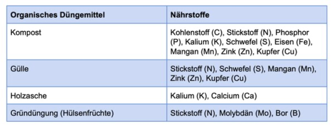 Wie kann ich diese Nährstoffe mit organischen Düngemitteln in meine Böden ergänzen?